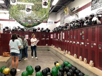 The varsity locker room is decorated each week based on the game themes. Volunteers are needed to assist with decorating. See the volunteer page if you are interested in helping.